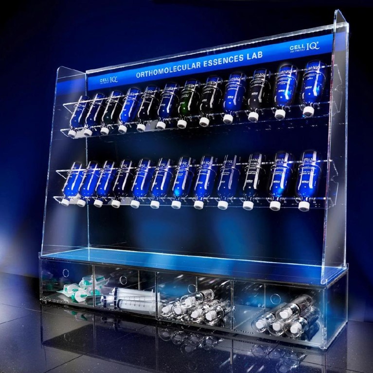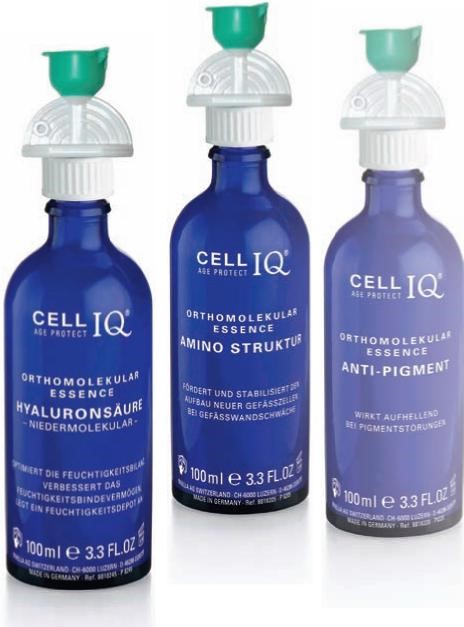 Das CELL IQ® ORTHOMOLECULAR ESSENCES LAB ist eine Kombination aus orthomolekularer Medizin, Ernährungswissenschaft und ganzheitlicher Kosmetik. Das patentierte Konzept beruht auf dem hochdosierten Einsatz von Mikronährstoffen wie Vitaminen, Mineralien, Spurenelementen, Aktivextrakten, bestimmten Feuchtigkeitsfaktoren und aktiven Schutzsystemen. Diese Stoffe benötigt die Haut, um Zellen zu erneuern und sämtliche Funktionen aufrechtzuerhalten. Eine Unterversorgung mit Nährstoffen führt zu einer verlangsamten Hautregeneration, die sich in Falten, Alterungserscheinungen und Hautproblemen zeigt.